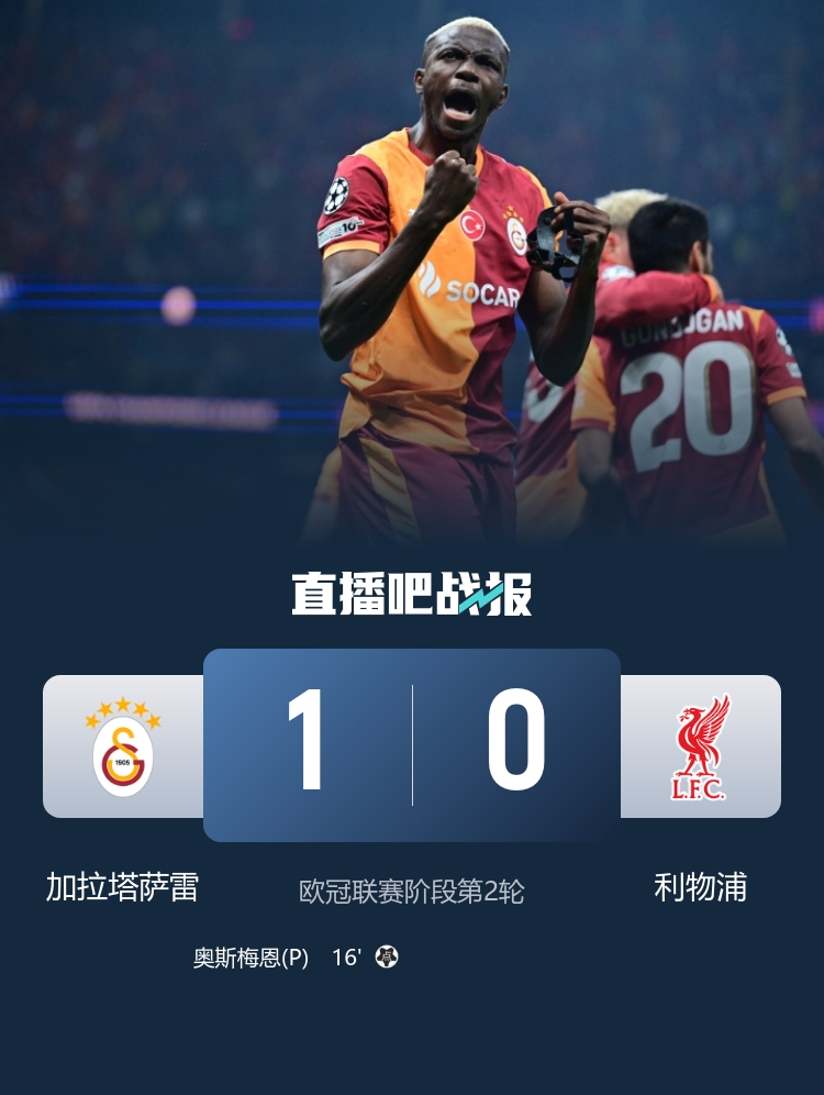 10月1日凌晨3时,欧冠小组赛第二轮在土耳其电信球场进行,利物浦客场对阵加拉塔萨雷。首半场,利物浦经历了一次意外的判罚,索博斯洛伊在回追防守时犯规,导致加拉塔萨雷获得点球机会,由奥斯梅恩主罚命中。此时,加克波也错过了一次绝佳的得分机会。半场结束,利物浦以0-1落后于对手。